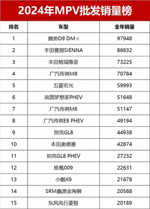 2024全年MPV批發(fā)銷量揭曉!新能源崛起,燃油車“冰火兩重天”